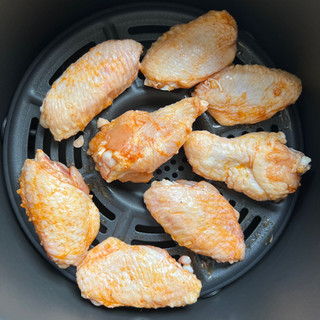 Set the air fryer to air fry mode at 390 degrees and cook them for 12 minutes. Flip the chicken wings halfway through. After 12 minutes, cook the wings for another 8 minutes at 400 degrees. This will finish cooking the wings and make them nice and crispy.